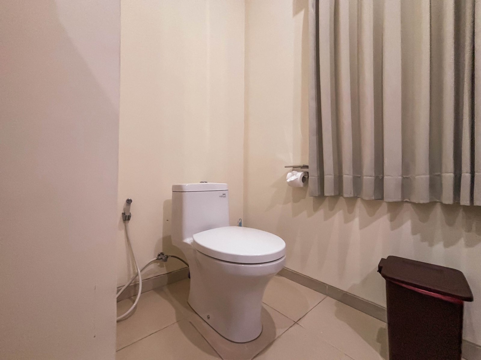 The private en-suite bathroom offers a relaxing experience with a modern bathtub, hot & cold shower, washbasin, and complete amenities – everything you need to refresh and unwind after a day of exploring.